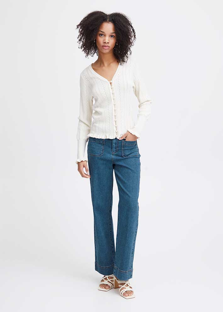 Skønne klassiske Eloi jeans fra Atelier Rêve, designet med brede ben i et højtaljet snit med lige silhuet og to forlommer. Enkelt design og let vasket finish fungerer cool og moderne og gør disse jeans nemme at kombinere med stort set hvad som helst.