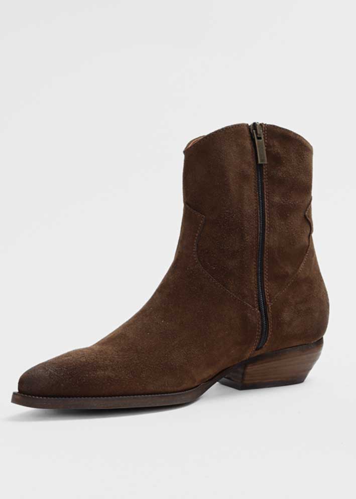 Skøn brun Berry støvle fra Bukela, designet i lækkert italiensk ruskind. Støvlen har et klassisk og sofistikeret udtryk, som tilfører både hverdags- og aftenlooks et moderne twist. Støvlen er foret med læder og har en slidstærk tunit-sål. En stilfuld støvle til dig, der ønsker luksuriøst design og prima kvalitet.