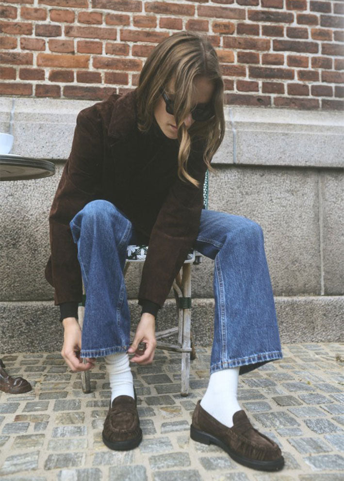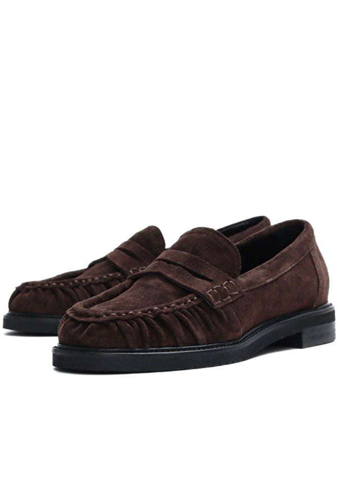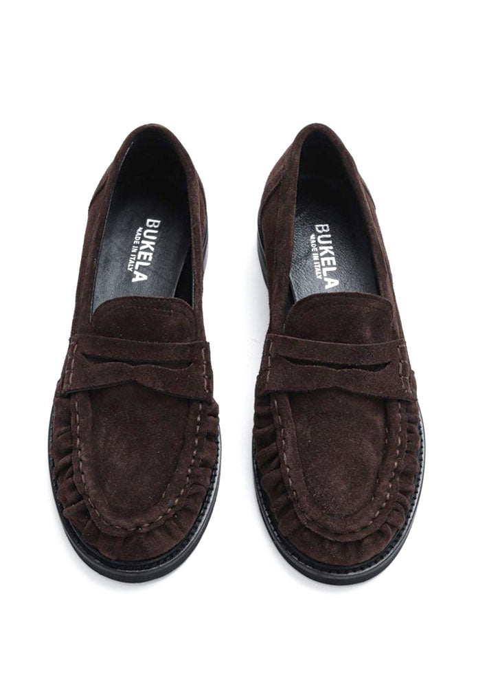 Umådelig lækker mørkebrun Maya loafer sko fra Bukela, designet i det blødeste ruskind.