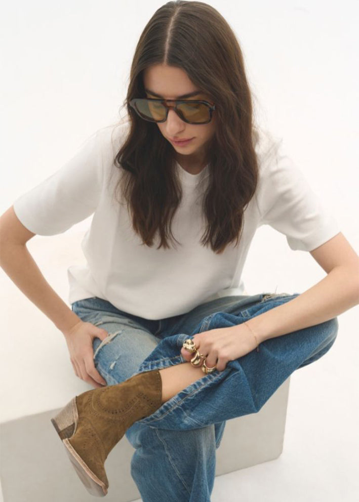 Super cool og meget, meget lækker brun Napoli western-støvle fra Bukela, designet i blødt italiensk ruskind med et rustikt finish på sålen. Støvlen har et klassisk og sofistikeret udtryk, som tilfører både hverdags- og aftenlooks et moderne twist. Støvlen er foret med læder og har en slidstærk tunit-sål samt lynlås i hælen. En stilfuld støvle til dig, der ønsker luksuriøst design og prima kvalitet.