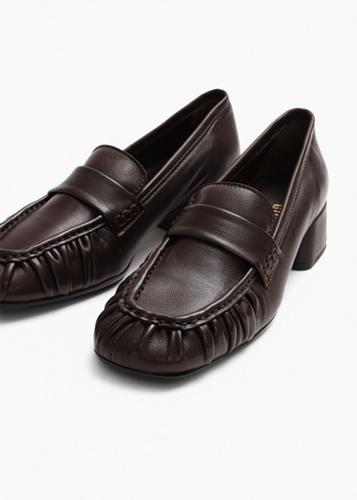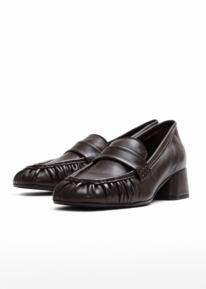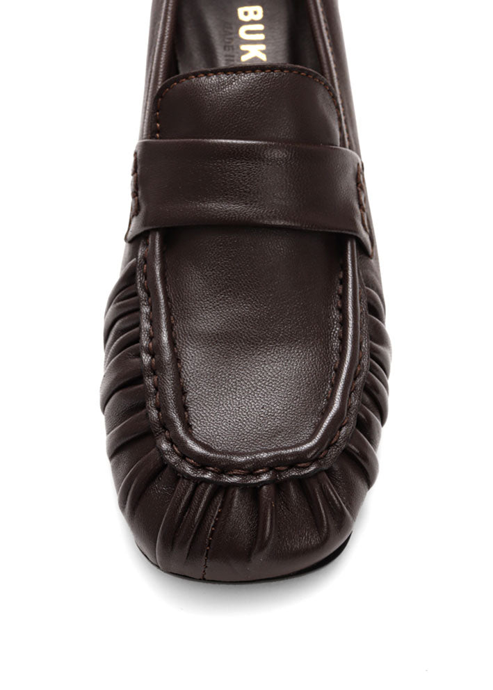 Umådelig lækker mørkebrun Sarah loafer sko fra Bukela, designet i det blødeste skind med en fin rynkeeffekt omkring forfoden.