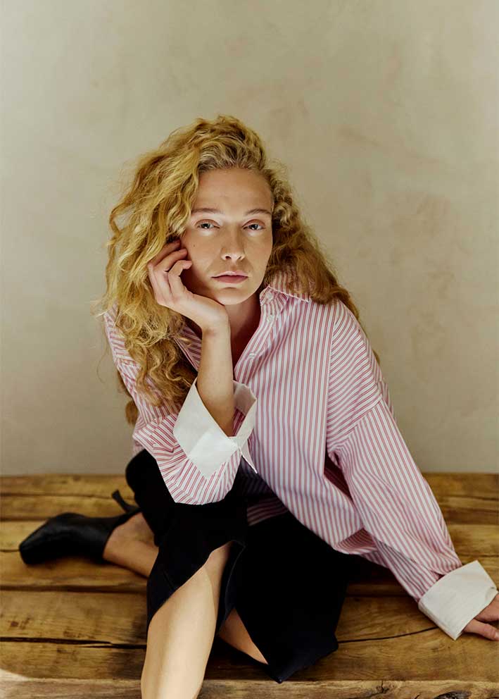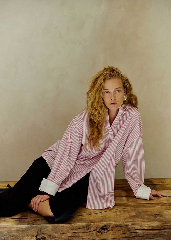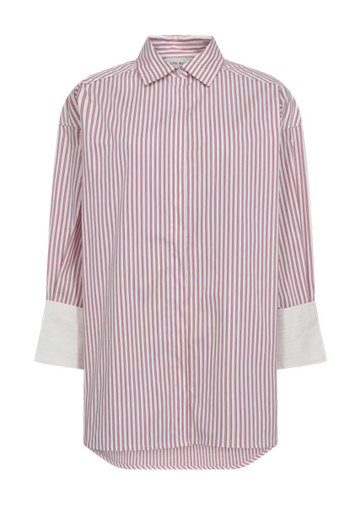 Skøn rødstribet oversized Maryann skjorte fra CPH Muse, designet i en eksklusiv bomuldskvalitet med skjult knaplukning på fronten, trekvarte ærmer med en høj cuff samt en oversize, lige pasform.