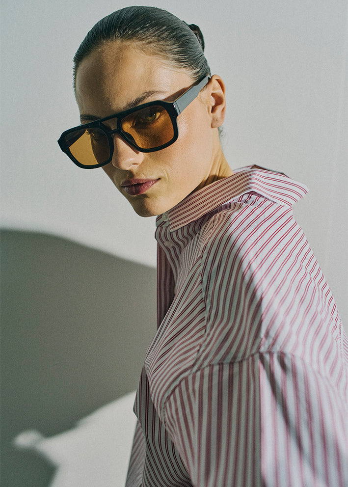 Perfekt til klassiske sorte bukser, rå jeans og som her, med de super cool Ada track pants.