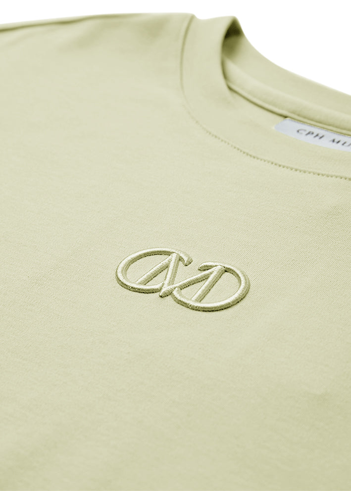 Lækker lys pistacie-grøn Muse logo-t-shirt fra CPH Muse, designet i en eksklusiv, tyk økologisk bomuldskvalitet. T-shirten har et løst snit, rund hals, en eksklusiv broderet logodetalje på brystet samt korte ærmer med drop shoulders, der understreger den oversize silhuet.