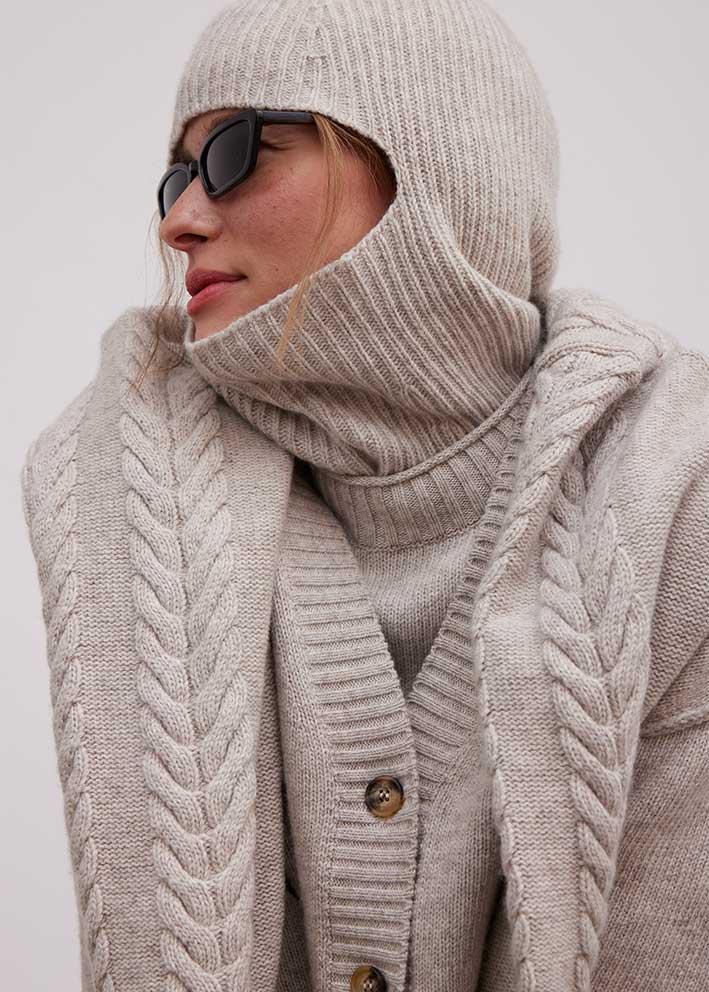Her bla. kombineret med Elida cardigan, Elida raglan sweater samt Elida balaklava og Elida mittens.