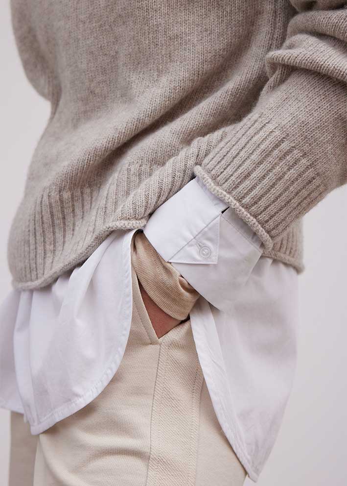 Perfekt tidløs sweater, der er super, bare som den er - med en skjorte under eller til layering.