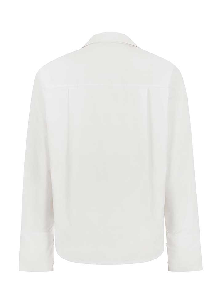 Skøn hvid Vivien skjortebluse fra Esmé Studios, designet i en blød økologisk bomuldskvalitet med let stræk. Blusen har en rummelig pasform, lange ærmer med brede manchetter, v-udskæring og en klassisk skjortekrave. Desuden to påsatte lommer foran, som er med til at give et let bohemet/tunikalook.
