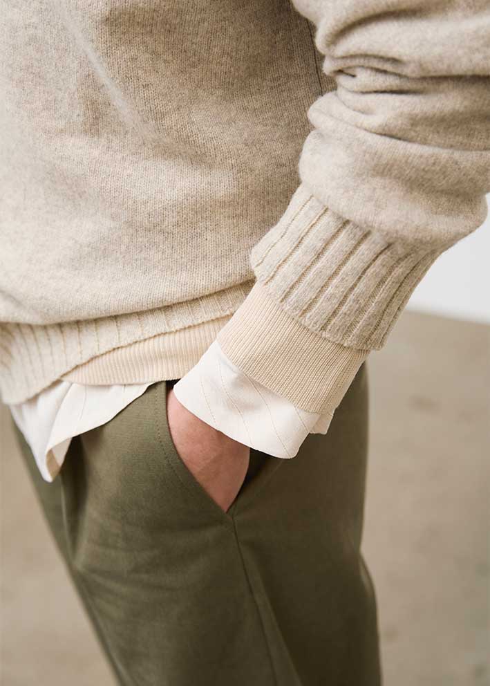En sweater der bare kan bruges til det hele. Kombinér eks. med klassisk skjorte eller t-shirt og cool cargobukser for et lækkert afslappet og behageligt sæt.