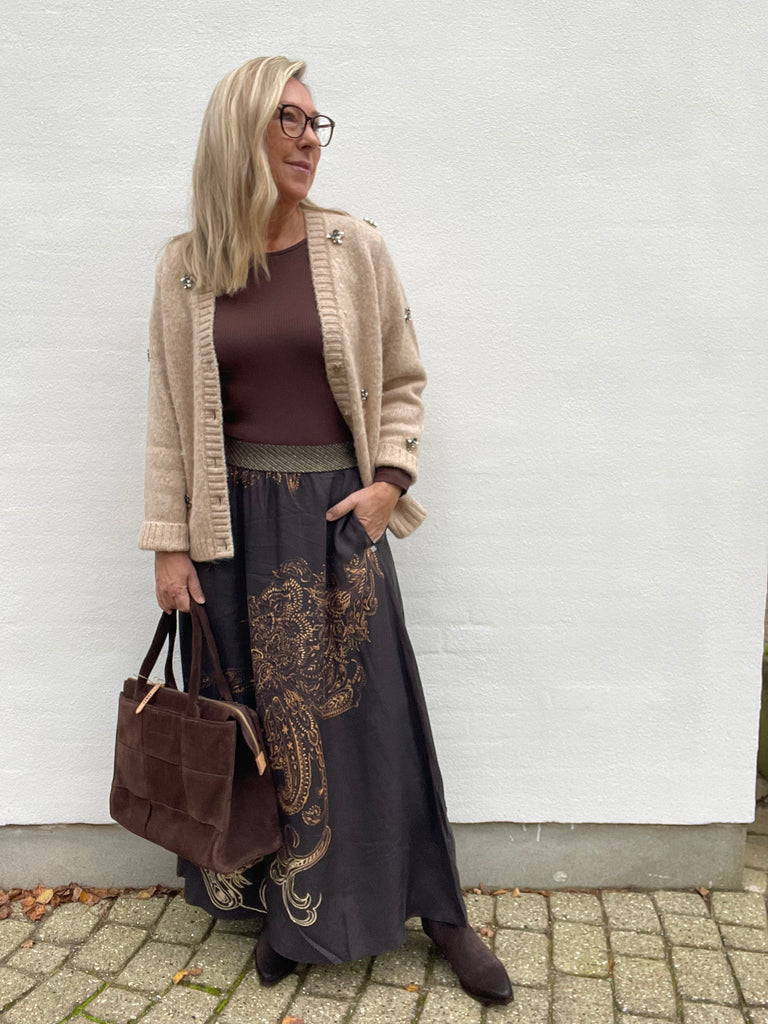 Gustav Lisa Long Skirt 58552 Nederdel - Mulch with Beige Paisley