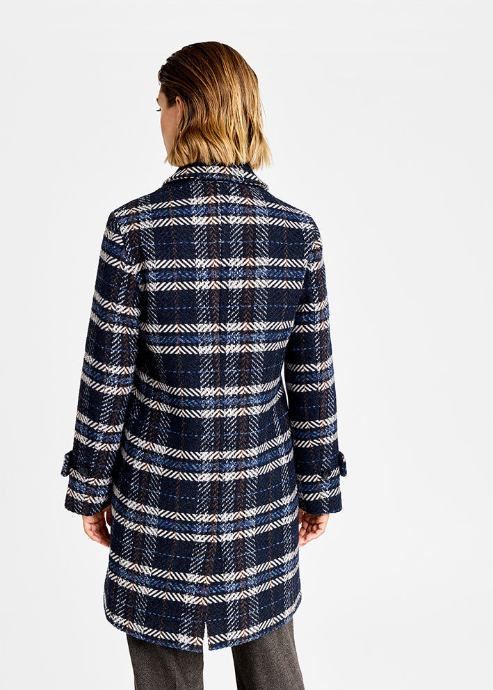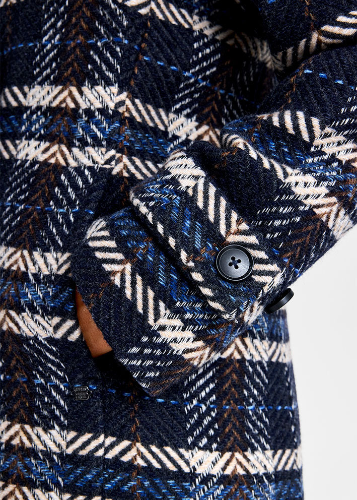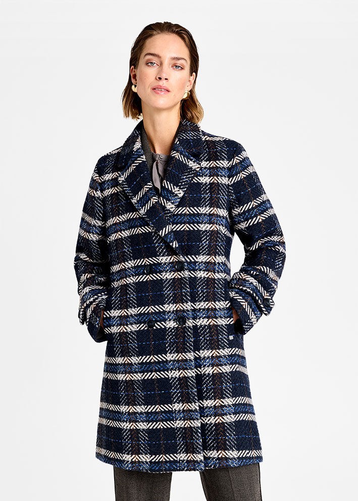 Skøn halvlang ternet Janice uldjakke fra Gustav, designet i en lækker grovvævet uldkvalitet. Jakken har et klassisk snit med stort revers, dobbeltradet knaplukning, skrålommer i siden og stropdetalje med knap på ærmet samt slids forneden bagpå.