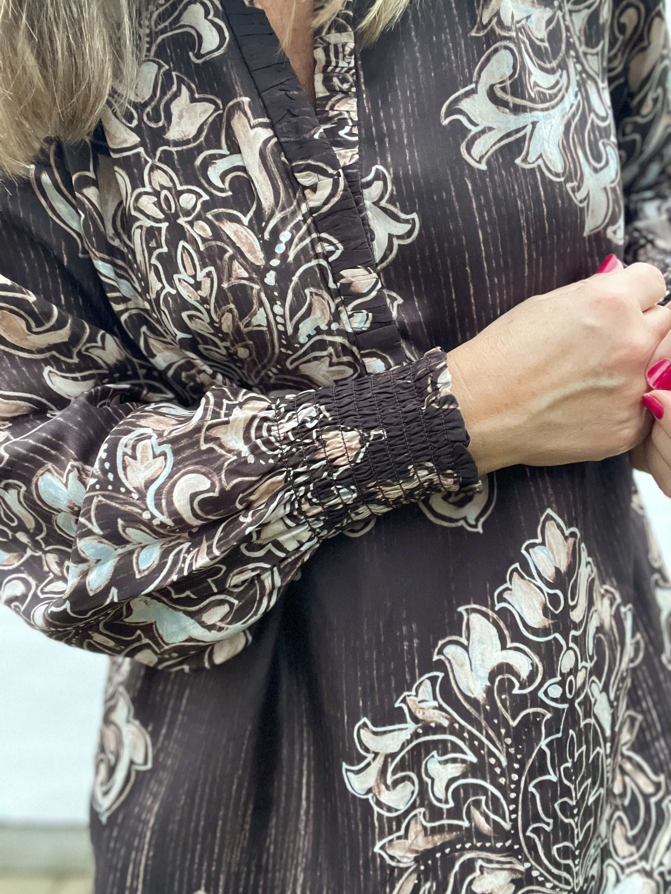 Smuk printet Sikka kjole fra Gustav, designet i en lækker cuprokvalitet med et fantastisk smukt print.