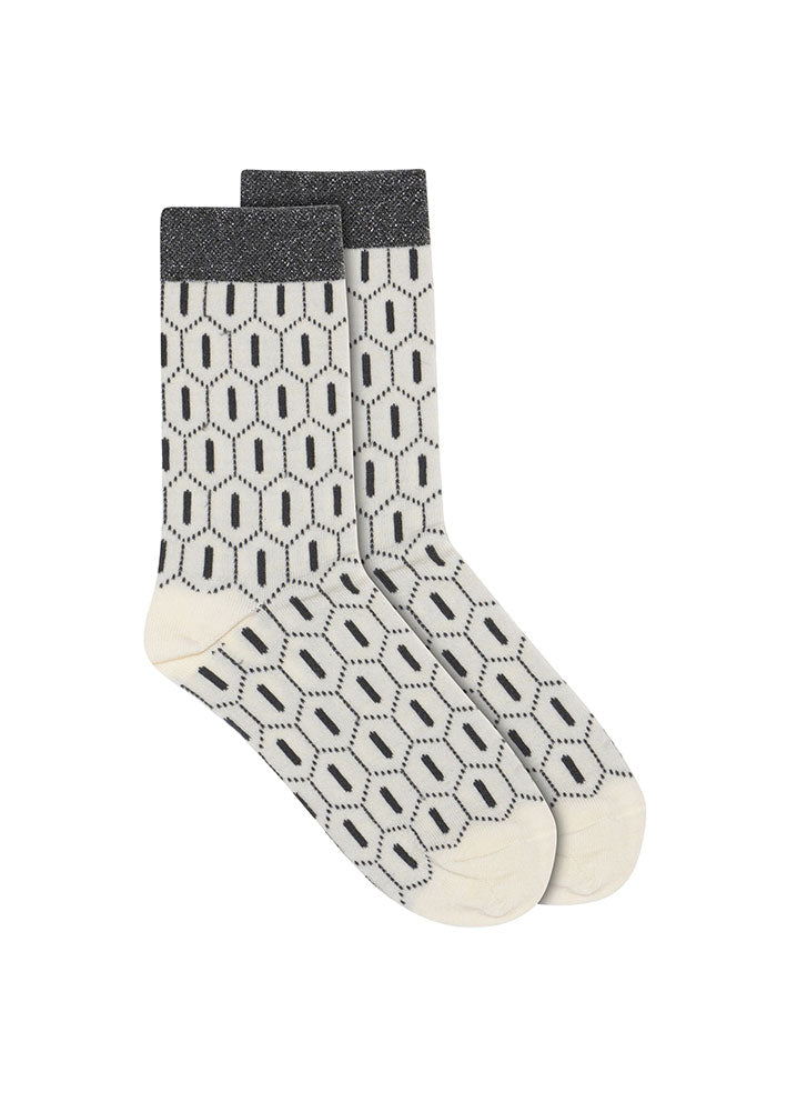 Lækre mønsterstrikkede Kaila luksus-ankelstrømper fra Gustav - udført i en blød elastisk uldkvalitet med lurexglimmer.