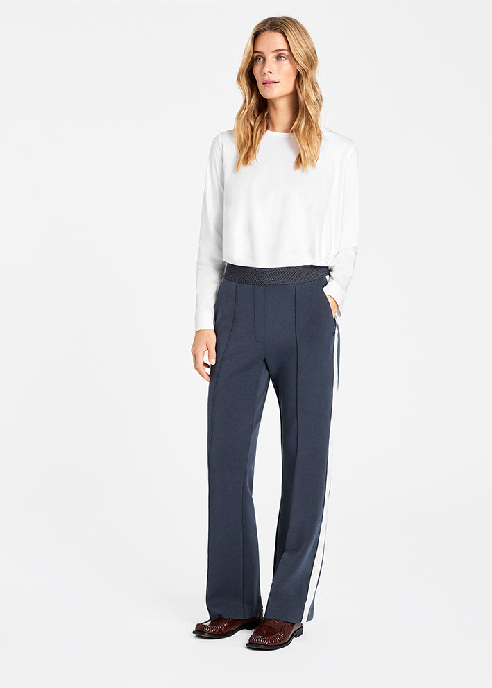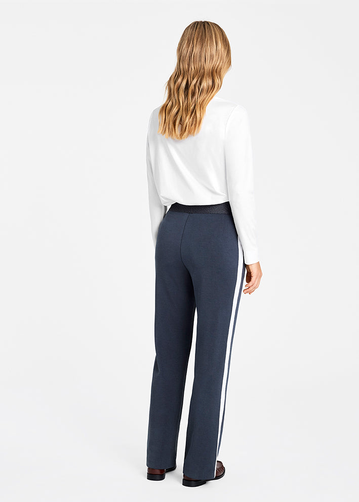 Sæsonens måske lækreste mørkegrå bukser med galoner/striber ned langs siderne: Marit bukserne fra Gustav, designet i en skøn stretchy jerseykvalitet, der gør at bukserne er super behagelige at have på og samtidig ser totalt stilfulde ud. Bukserne har desuden en dejlig bred elastiktalje og lange lige ben.