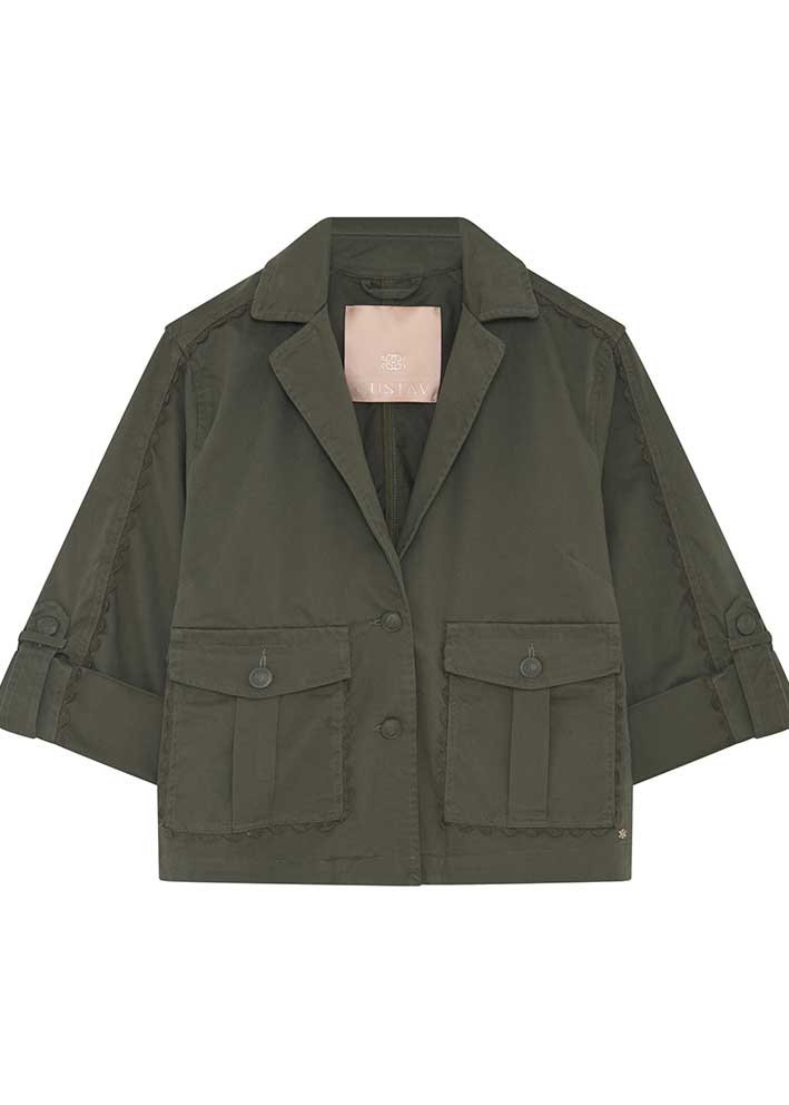 Thala short trench coat fra Gustav er den perfekte overgangsjakke, der kombinerer klassisk elegance med moderne design. Den smukke mørkegrønne farve giver en frisk og feminin twist på den traditionelle trenchcoat.
