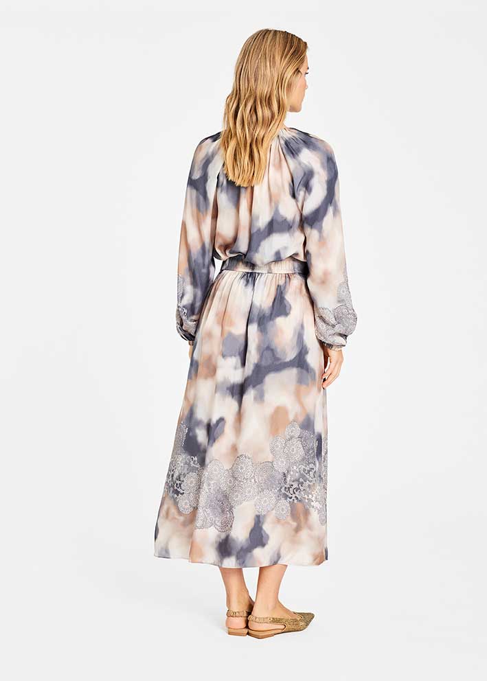 Fantastisk flot og elegant printet Mabell nederdel fra Gustav, designet i en lækker cuprokvalitet i et flatterende snit med vidde, lommer i siden.