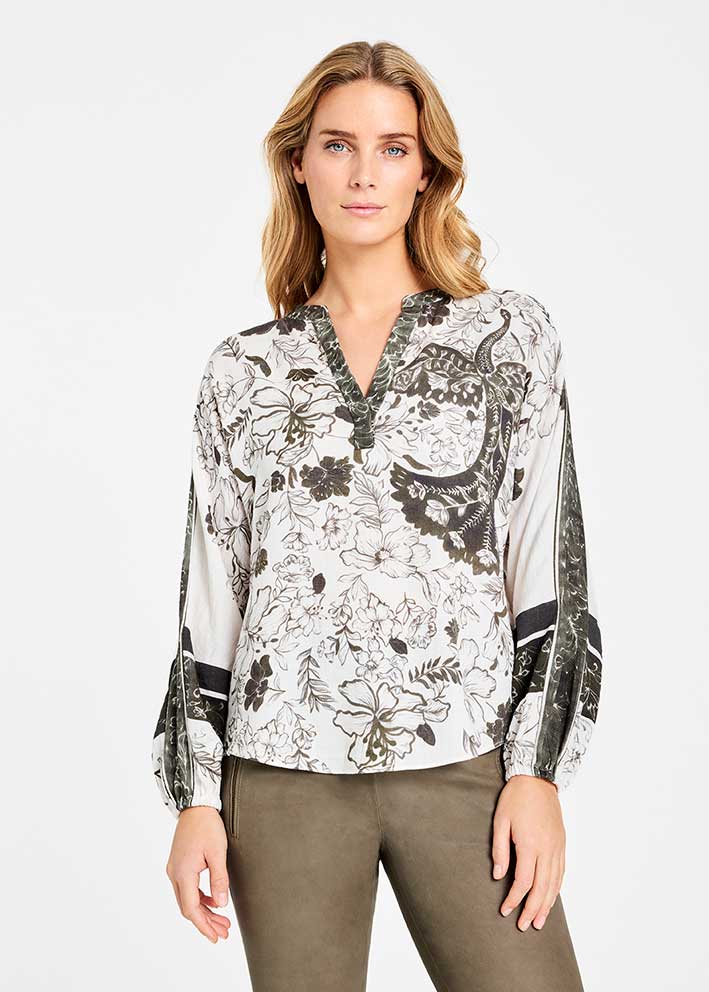 Gustav Sussie Bluse 60616 Off White with Olive Print