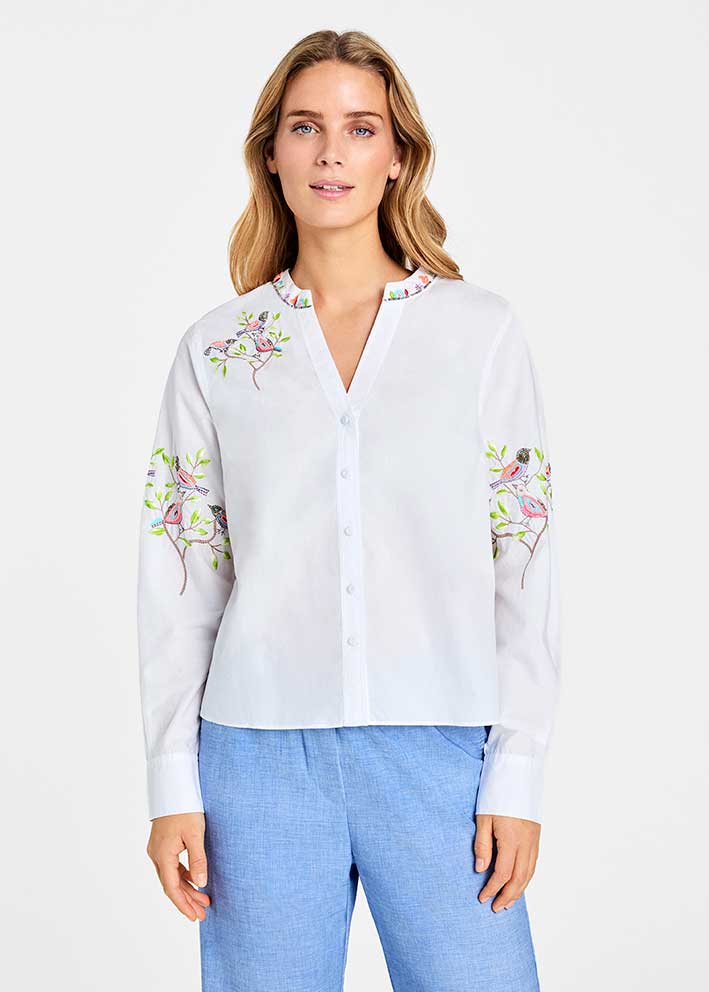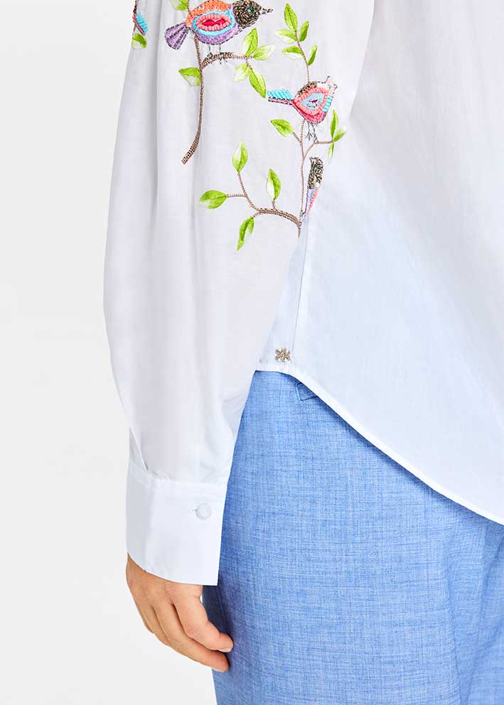 Bayanne skjorte fra Gustav med fantastisk smukke broderier, kombinerer tidløs elegance med nordisk minimalisme. Den 100% bomuld giver skjorten en behagelig, åndbar kvalitet med en crisp finish.