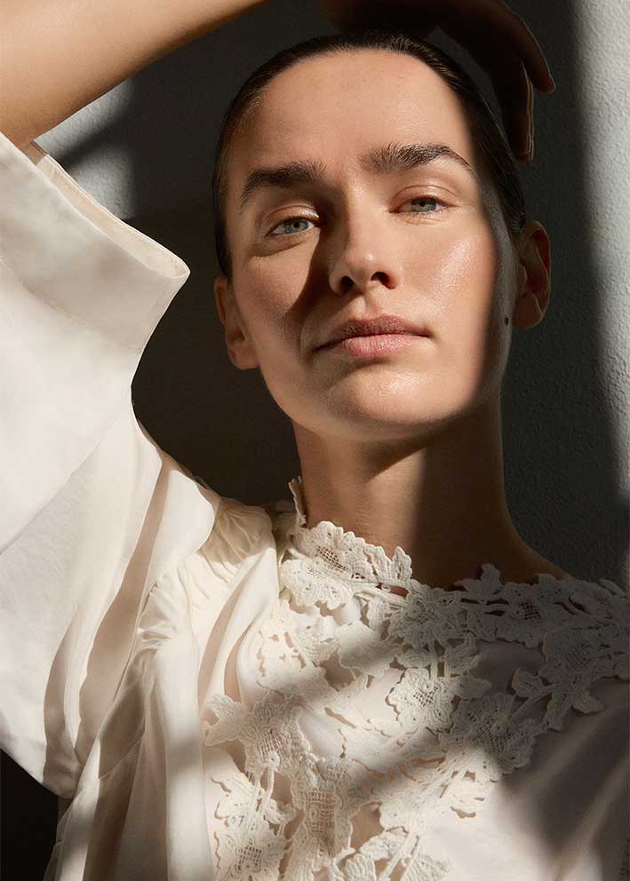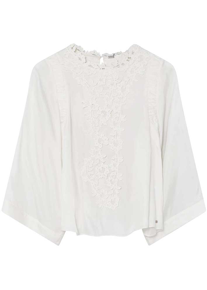Den smukke off white farve er tidløs og let at style – kombiner den med jeans til en casual look eller med en nederdel til en mere elegant anledning. Det bløde cupro- og viskosemateriale føles behageligt mod huden og falder smukt.
