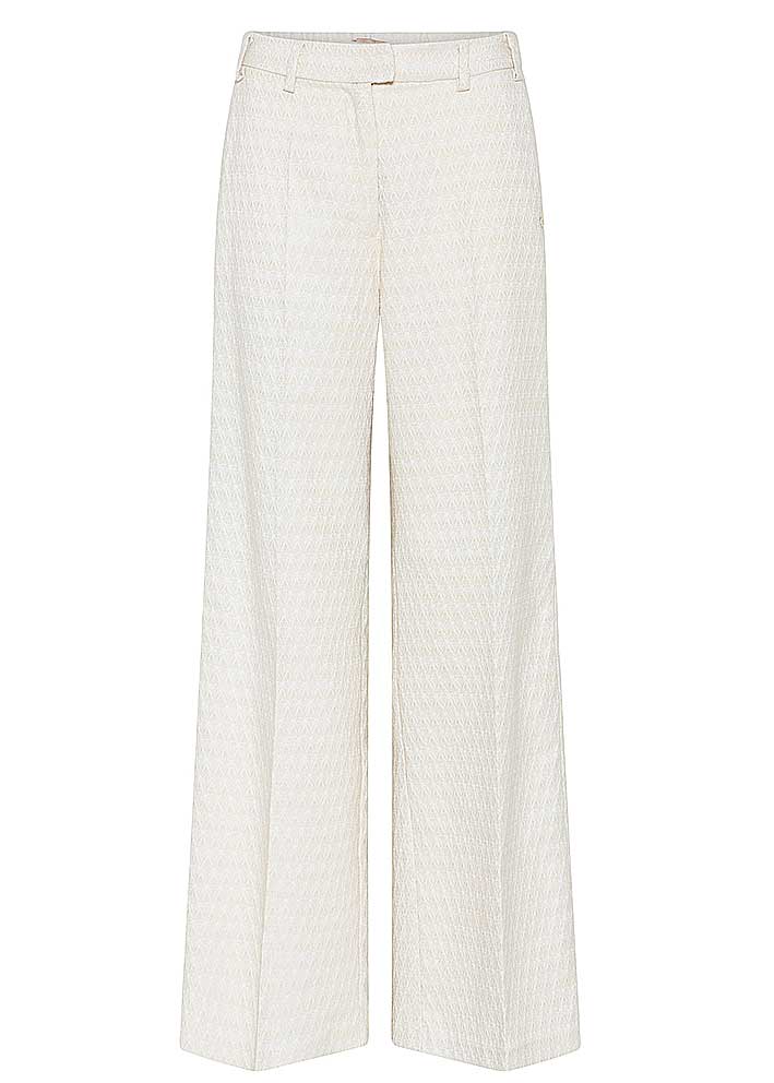 Elegante jacquardvævede Esmi bukser fra Gustav, designet i en eksklusiv struktureret kvlaitet. Bukserne er lange og løstsiddende og har vide ben samt skjult knap-, hægte- og lynlåslukning.