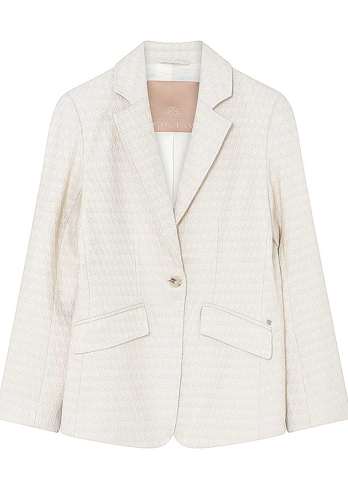 Umådelig smuk og elegant jacquardvævet Stacie blazer fra Gustav, designet i en eksklusiv struktureret kvalitet. Blazeren har et klassisk snit med hak-revers, enknapslukning og lommer med klap.