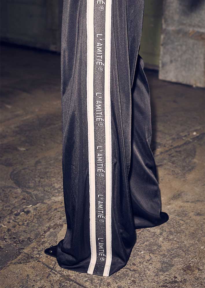 Super cool sorte Lurex Logo track pants fra Haute L'amitié, designet med glimmerstriber med logo ned langs siderne og en behagelig bred elastiktalje, pipings ned midt på benene samt lynlåslommer i siden.