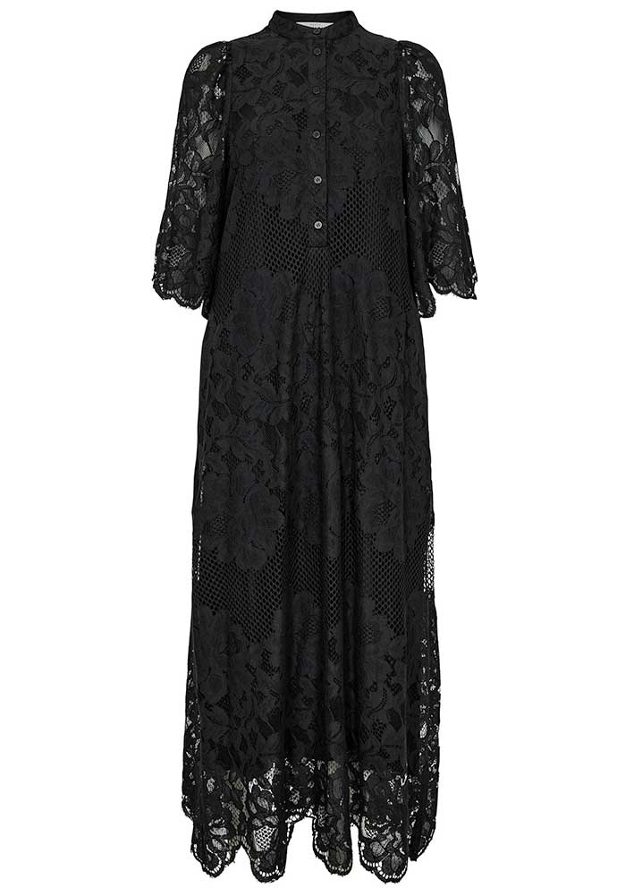 Umådelig smuk og elegant sort Curvey blondekjole fra Haute L'amitié, designet i en smuk blondekvalitet med buede blondekanter.