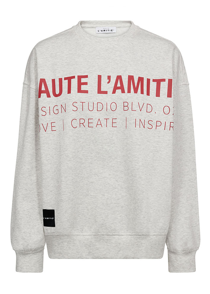 Haute L'Amitié Studio Logo Sweat - Pearl Melange /Red