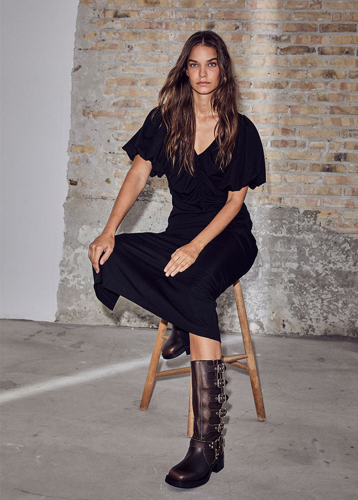 Smuk, elegant og yderst velsiddende sort Marise kjole fra Haute L'Amitie, designet i en lækker stretchy viscosekvalitet.