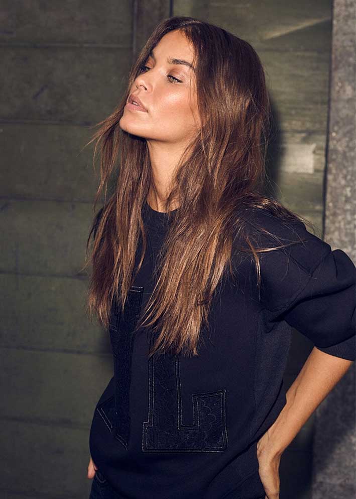 Super lækker sort sweatshirt fra Haute L'Amitie, designet i et enkelt klassisk snit med rund hals, lave skuldersømme og lange ærmer. Sweatshirten har store bogstaver i blonde på brystet, hvilket giver et sporty og samtidig feminint touch.