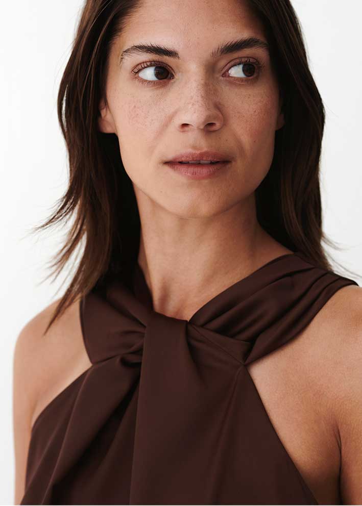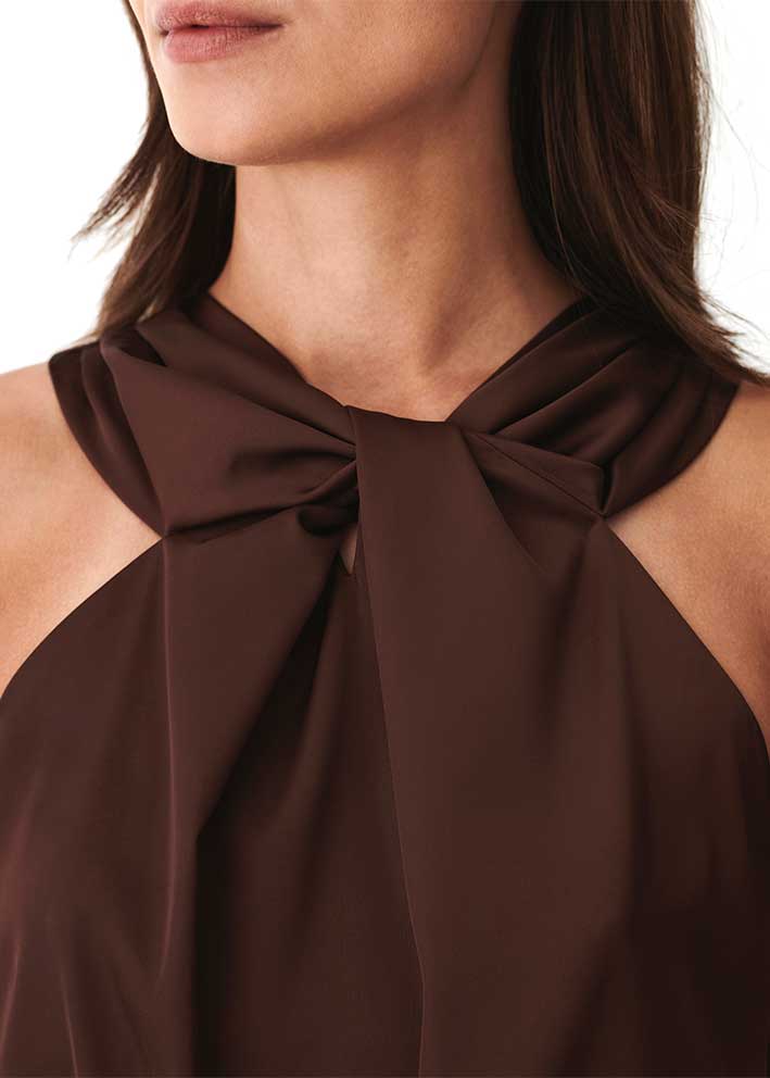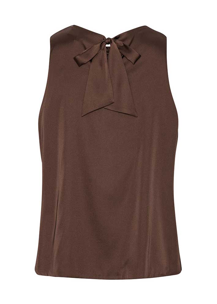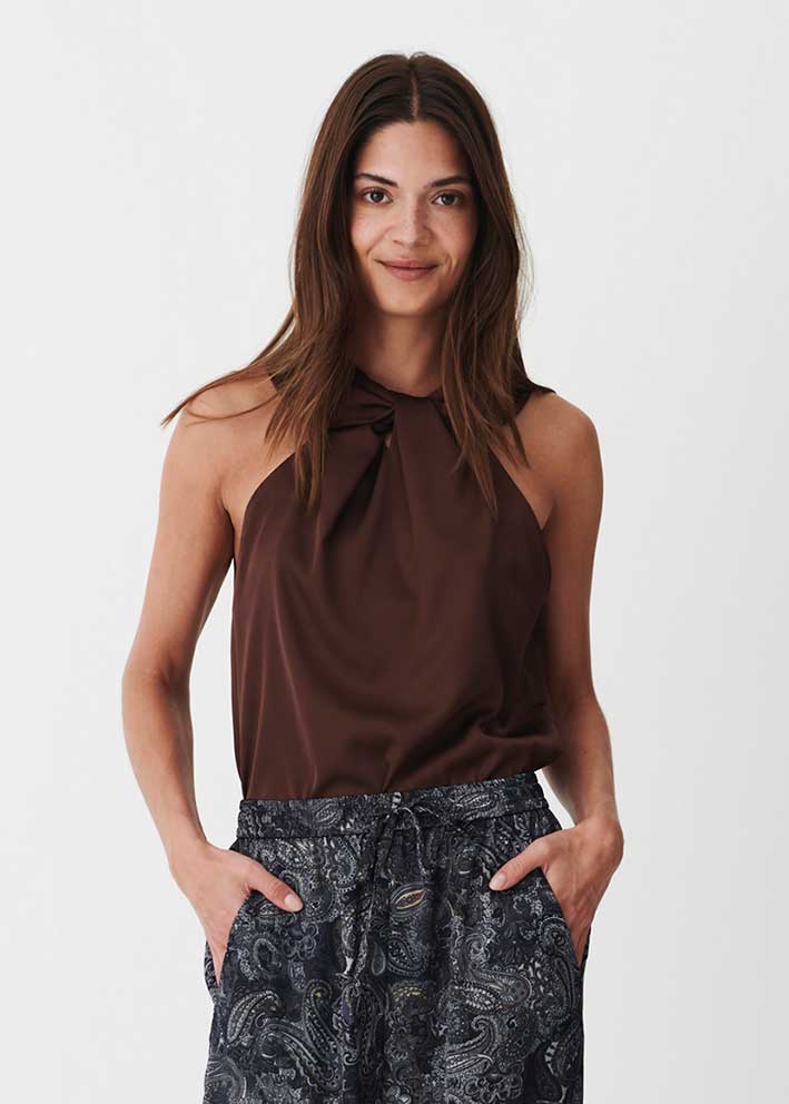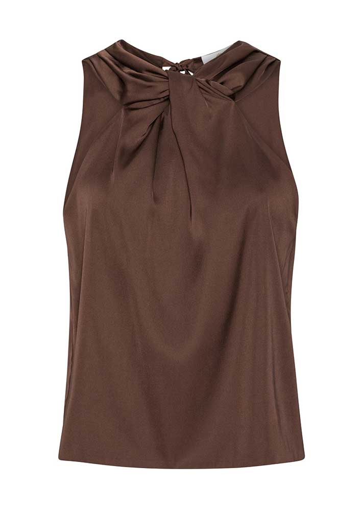 Smuk og elegant chokoladebrun Florence top fra Karmamia, designet i en lækker kraftig silkeagtig kvalitet, der falder smukt og er meget behagelig at have på.