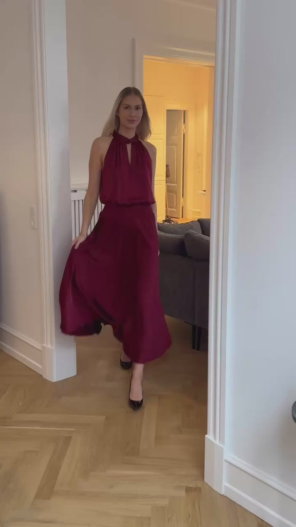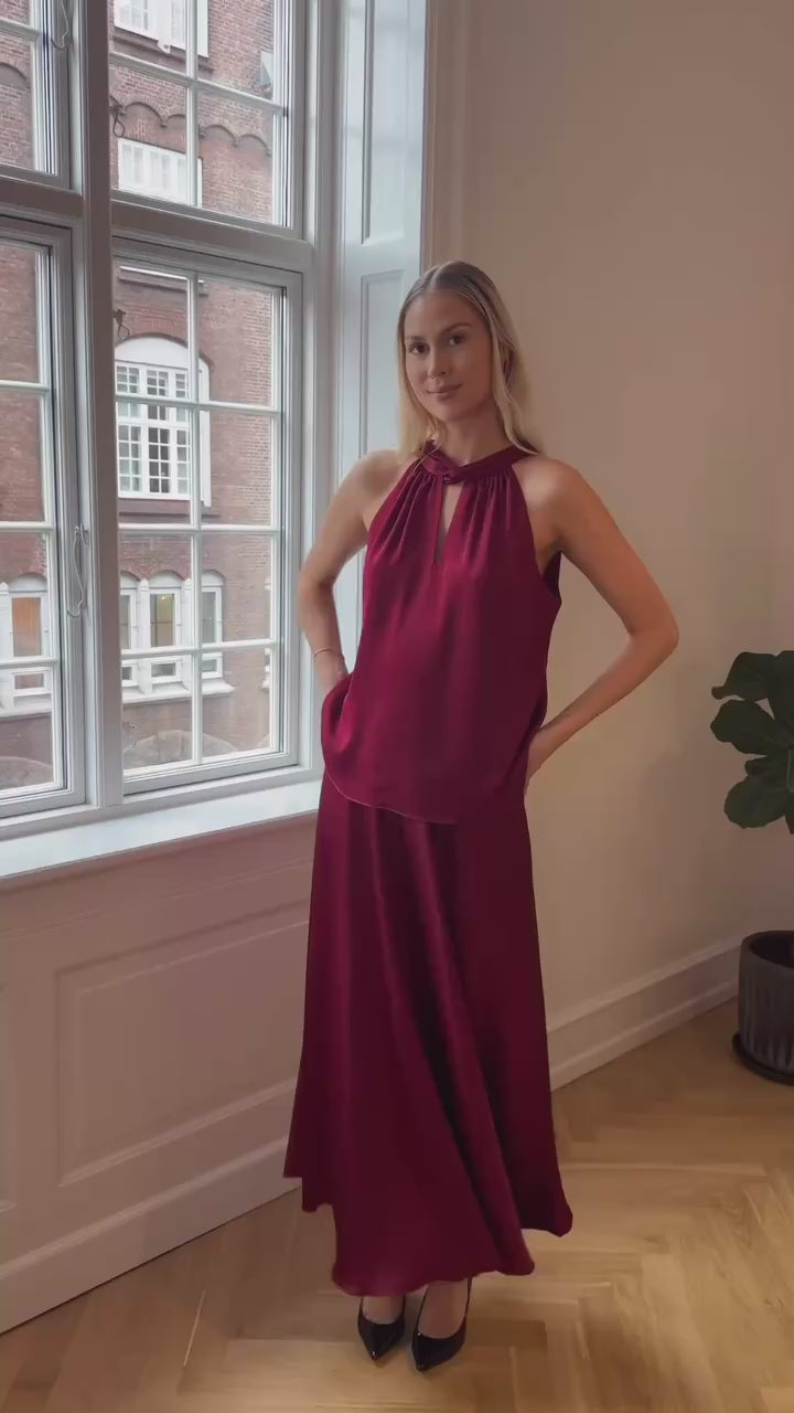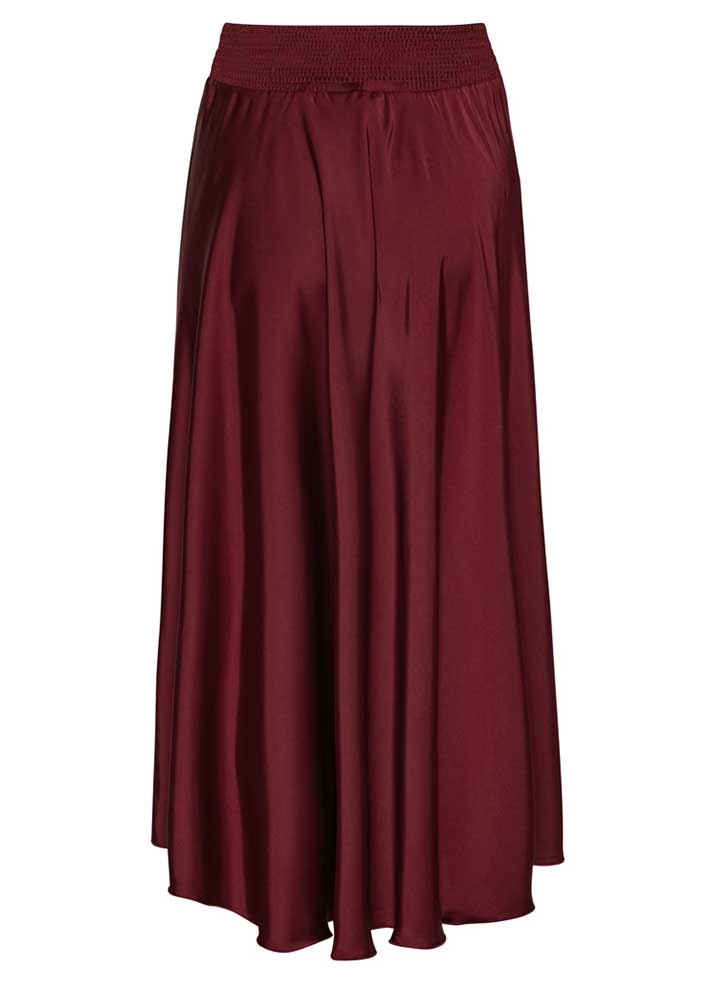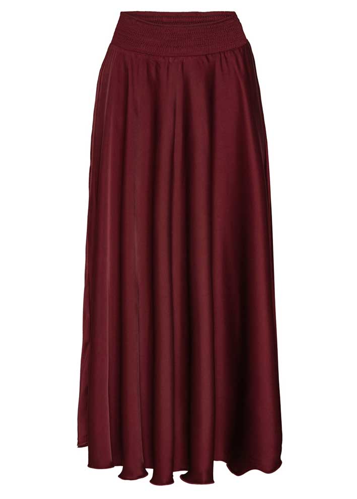Smuk vinrød Savannah nederdel fra Karmamia, designet i en kraftig silkeagtig kvalitet, der falder flot, ikke krøller og er super behageligt at have på. Nederdelen har bred behagelig elastiktalje og masser af vidde.