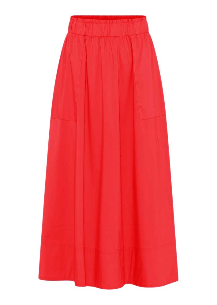 Frisk rød Vilma nederdel fra La Rouge, designet i et sporty snit med elastiktalje og lommer i siden.