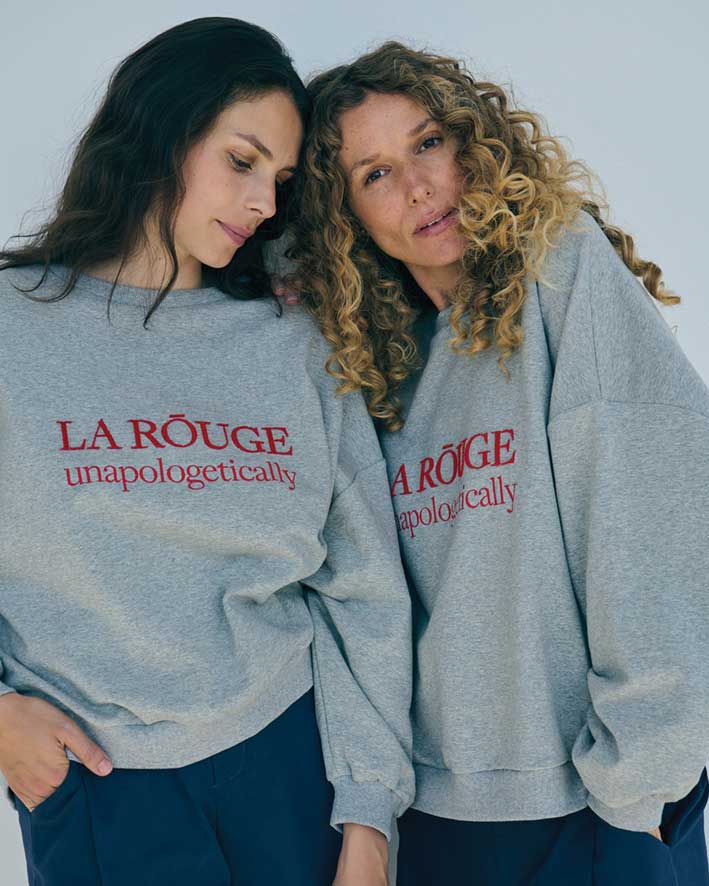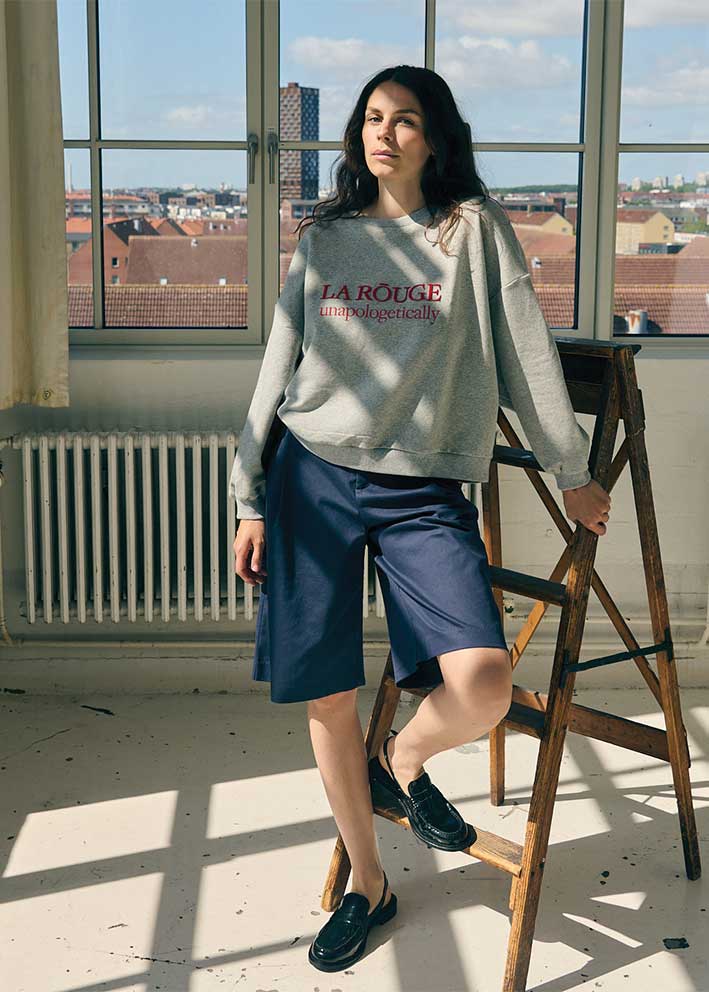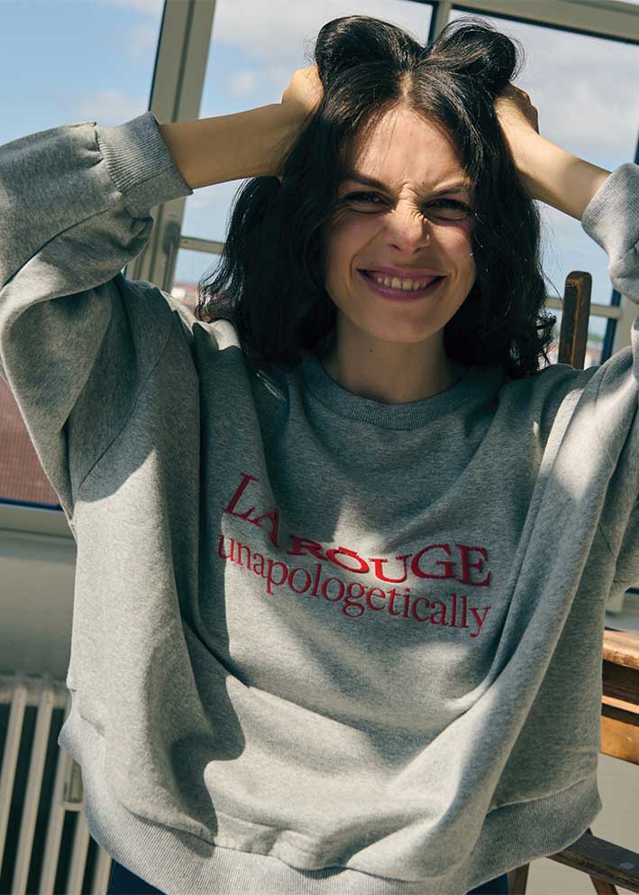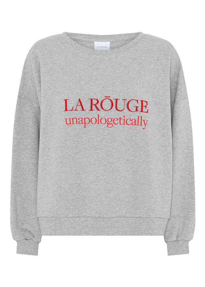 Skøn gråmeleret Henriette sweatshirt fra La Rouge - en klassisk sweatshirt med et sporty udtryk, der får et stilfuldt twist med det iøjnefaldende broderede røde logo på brystet. Unapologetically - Perfekt til dig, der står ved dig selv og ikke undskylder for det.
