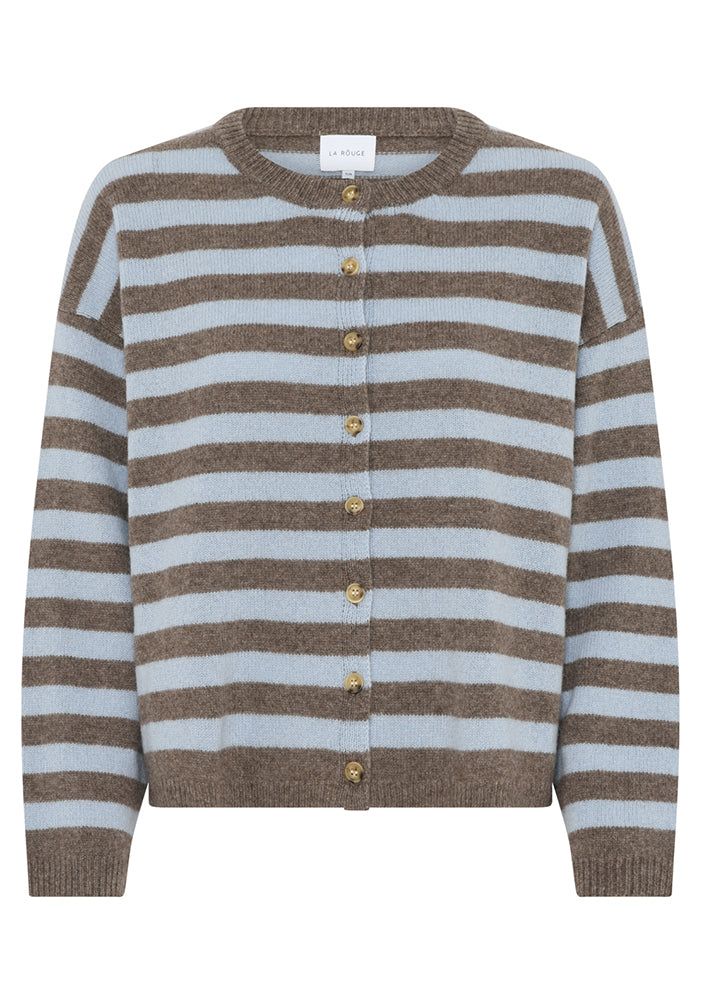 La Rouge Sisse Striped Cardigan - Light Blue/Brown Stripe