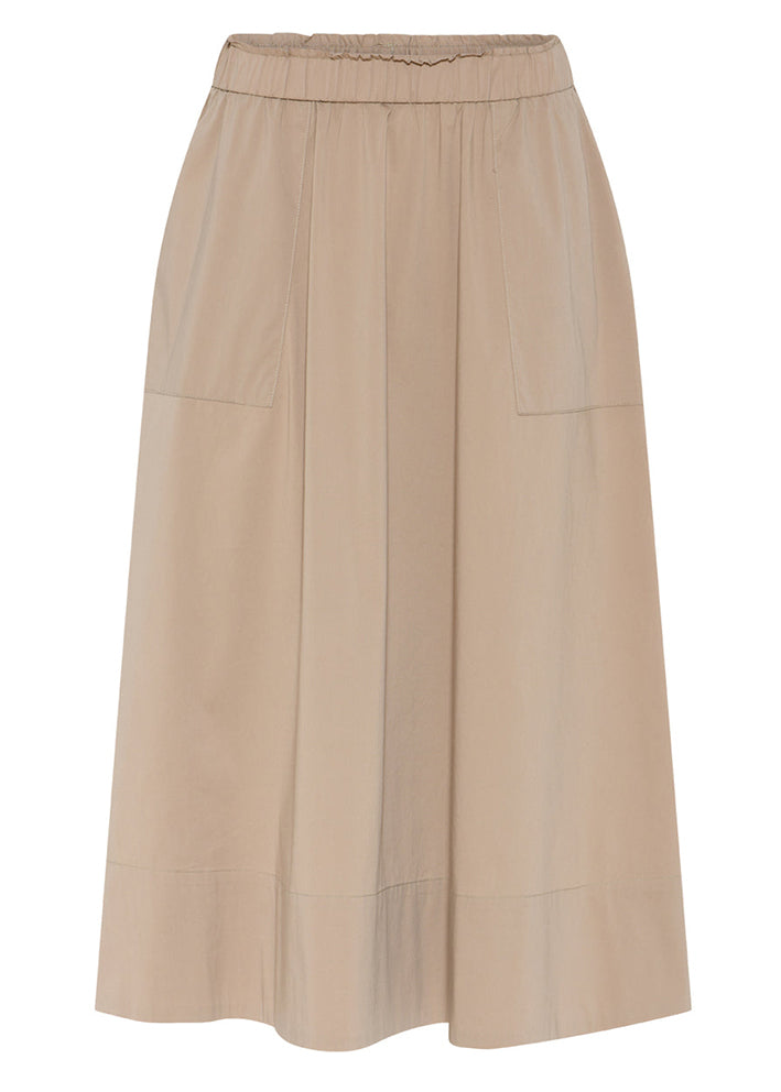 Skøn sandfarvet Vilma nederdel fra La Rouge, designet i et sporty snit med elastiktalje og lommer i siden.