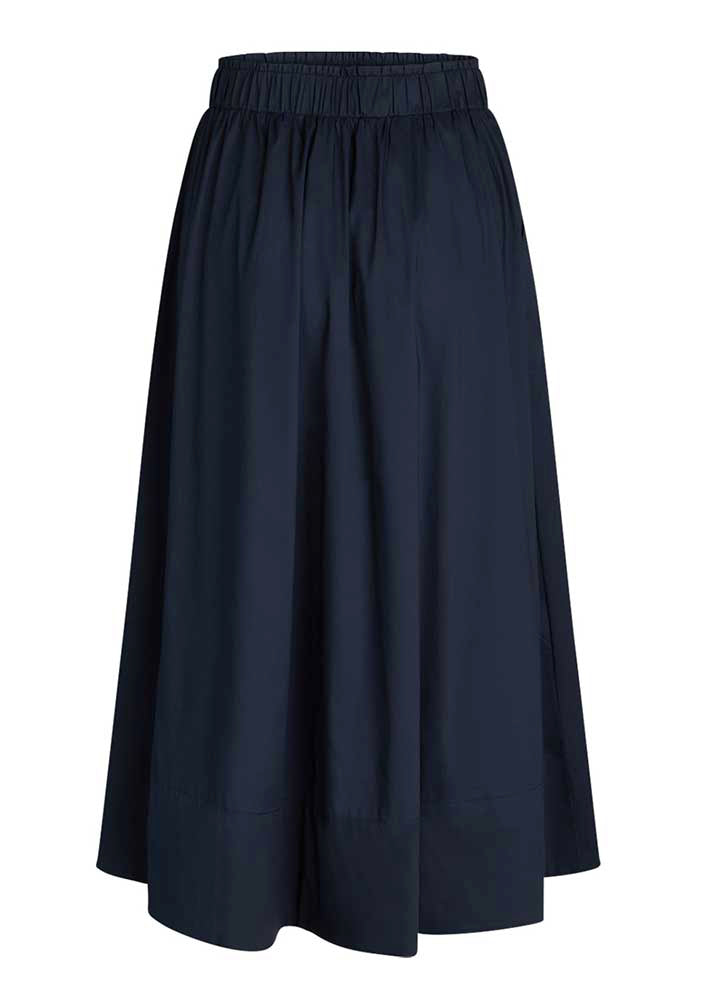 Skøn navyblå Vilma nederdel fra La Rouge, designet i et sporty snit med elastiktalje og lommer i siden.