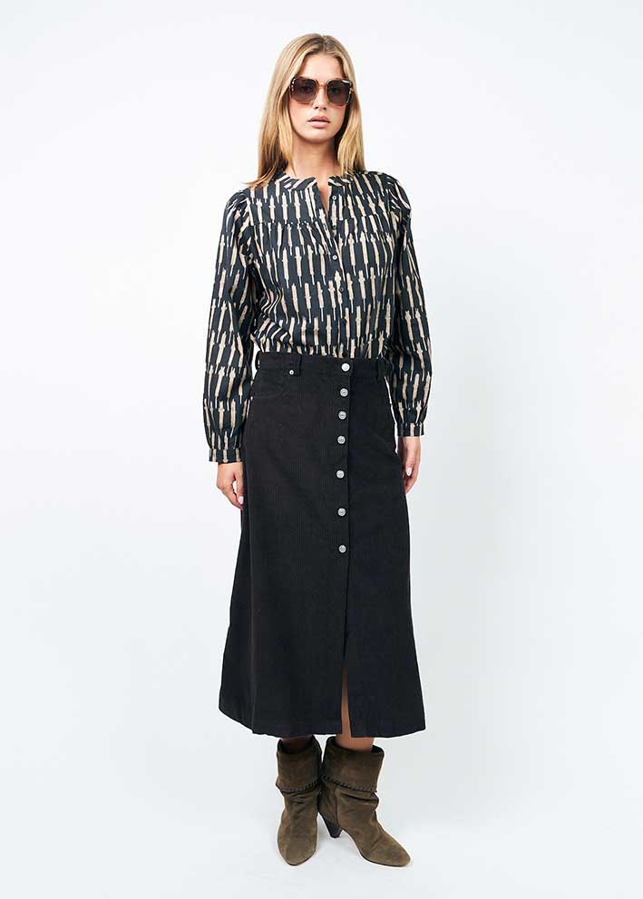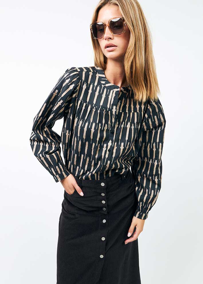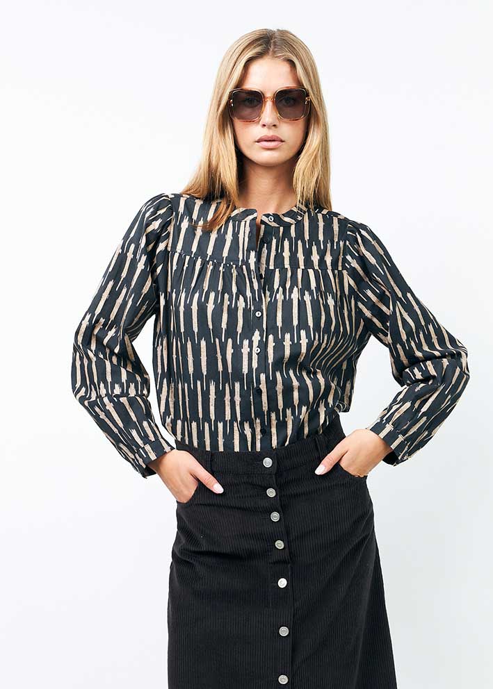 Skøn printet Nicky skjorte fra Lollys Laundry - en let og stilfuld skjorte i 100% bomuld, der kombinerer et unikt print med en afslappet og feminin silhuet.