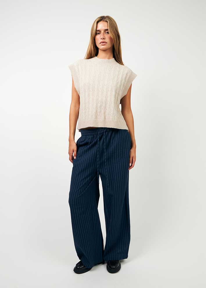 Skøn kabelstrikket beigefarvet Finn vest fra Lollys Laundry - en blød strik med klassisk kabelmønster og rund hals. Vesten har en løs pasform med ribkant ved halsen, forneden og ved ærmegabene. Perfekt som den er - og til lag-på-lag looks.