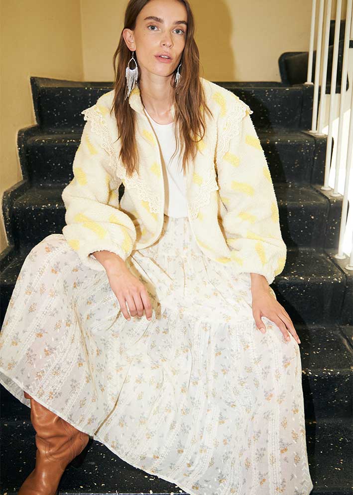 Sunset Maxi nederdelen fra Lollys Laundry er et statement piece, der kombinerer feminin elegance med en flydende, romantisk silhuet. Denne smukke lange nederdel i cremet nuance er det perfekte valg til både sommerens festlige anledninger og mere afslappede hverdage.