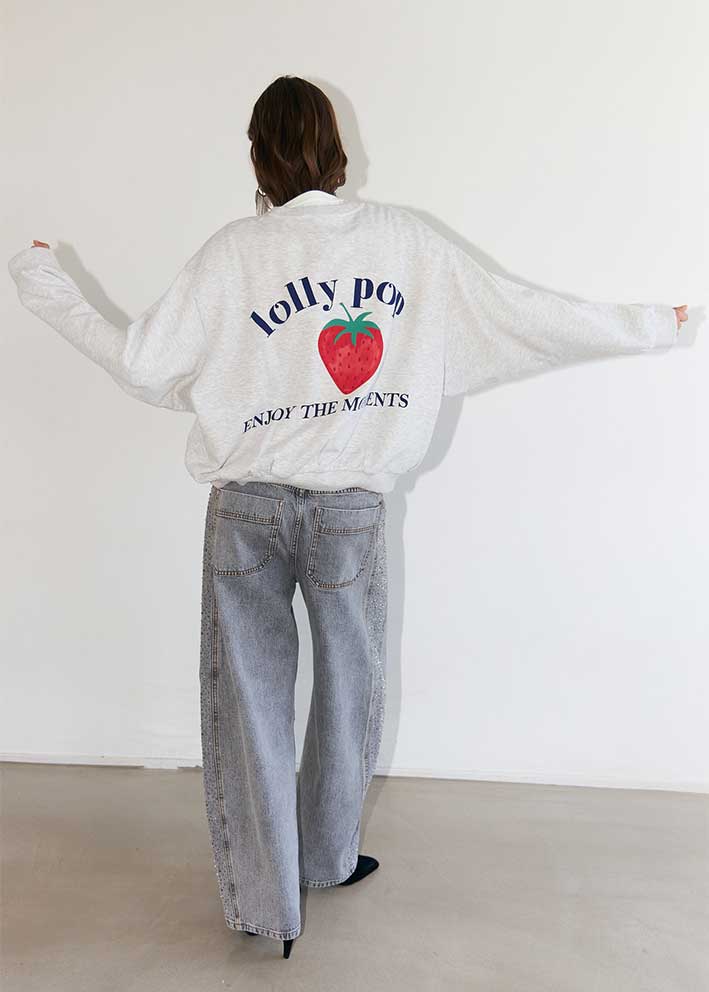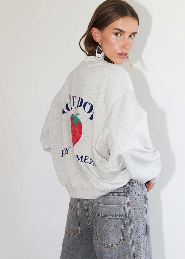 Lollys Laundry Sydney Strawberry Sweatshirt - Light Grey Melange
