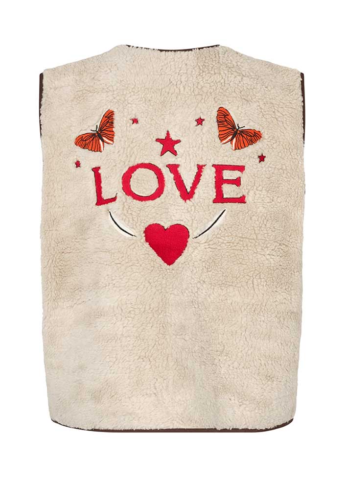 Det helt fantastisk flotte LOVE broderi på ryggen, gør vesten så fin og speciel.