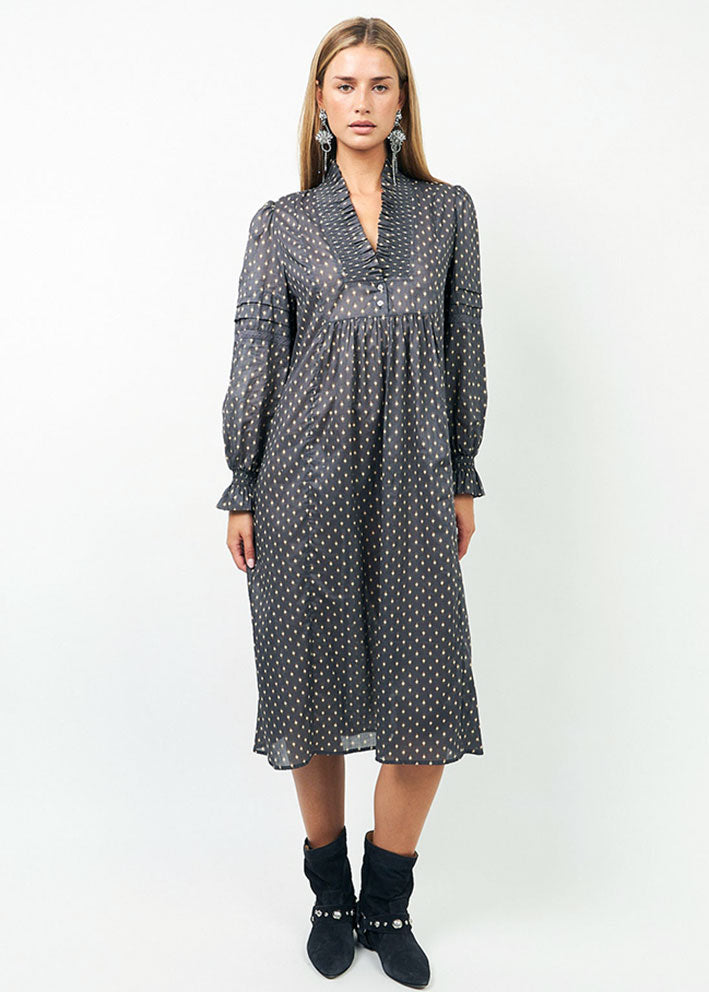 Elegant kjole med en snært af boheme, der nemt kan styles op eller ned, både til hverdag og festlige anledninger.