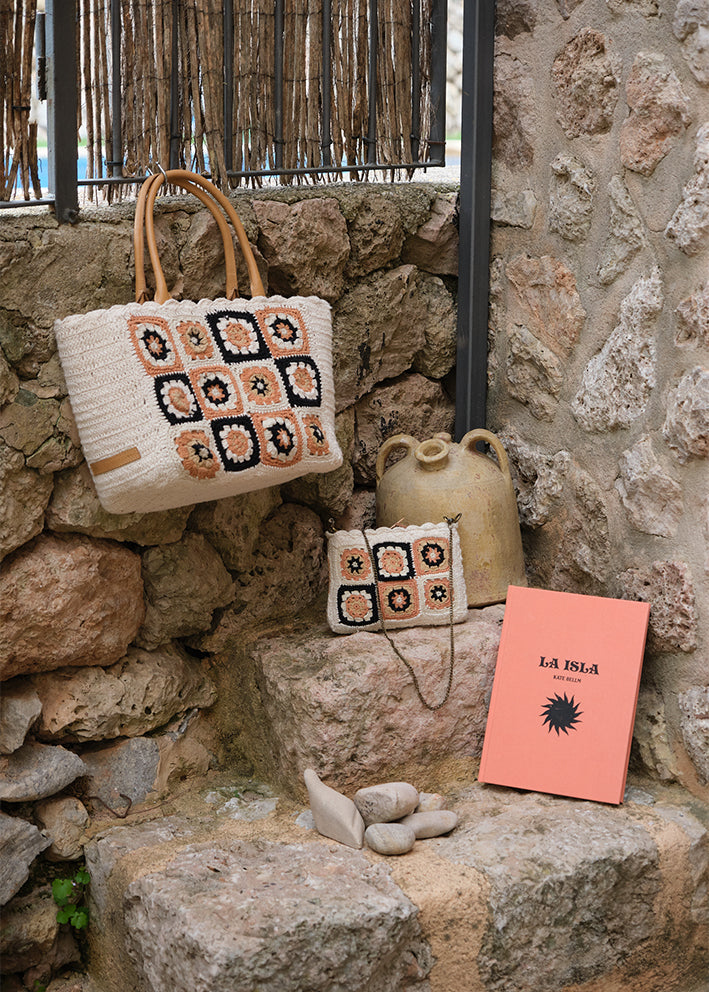Mød Las Dalias Clutch fra Luna Moon — en håndlavet mini-taske med stort udtryk. Håndhæklet i 100% økologisk bomuld i bløde creme- og coralfarver, er denne clutch det perfekte valg til aftenen, sommerfesten eller når du vil løfte et outfit med et bohemisk touch.