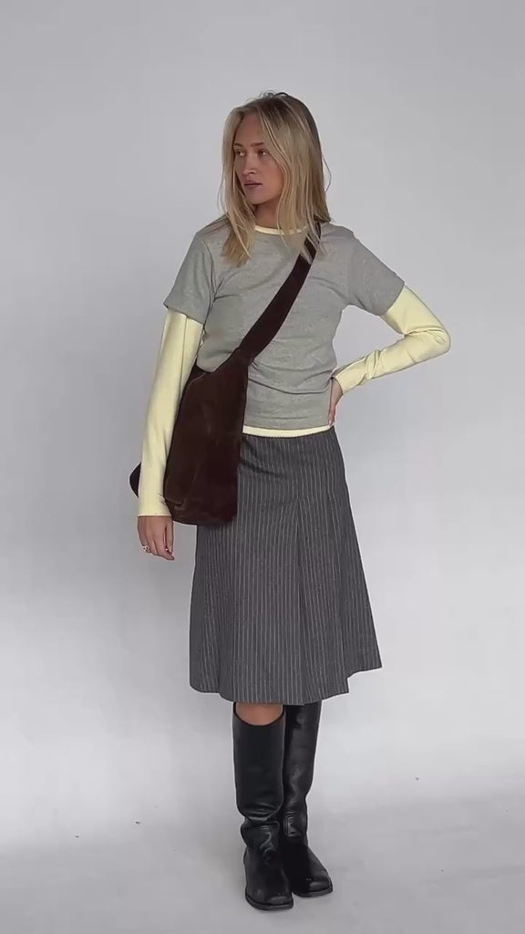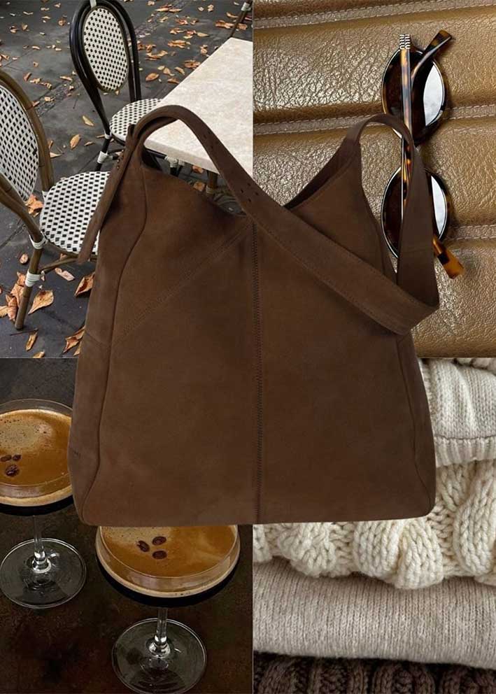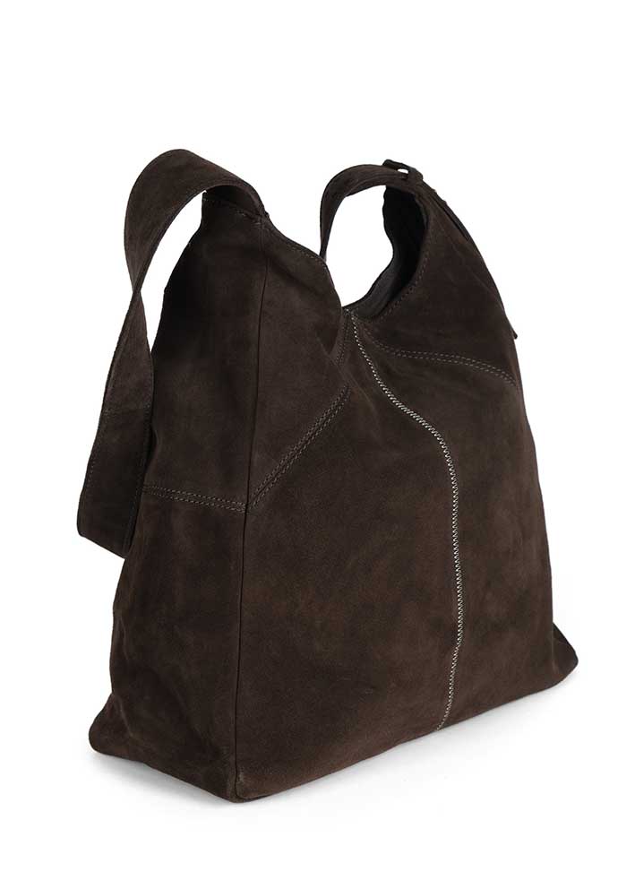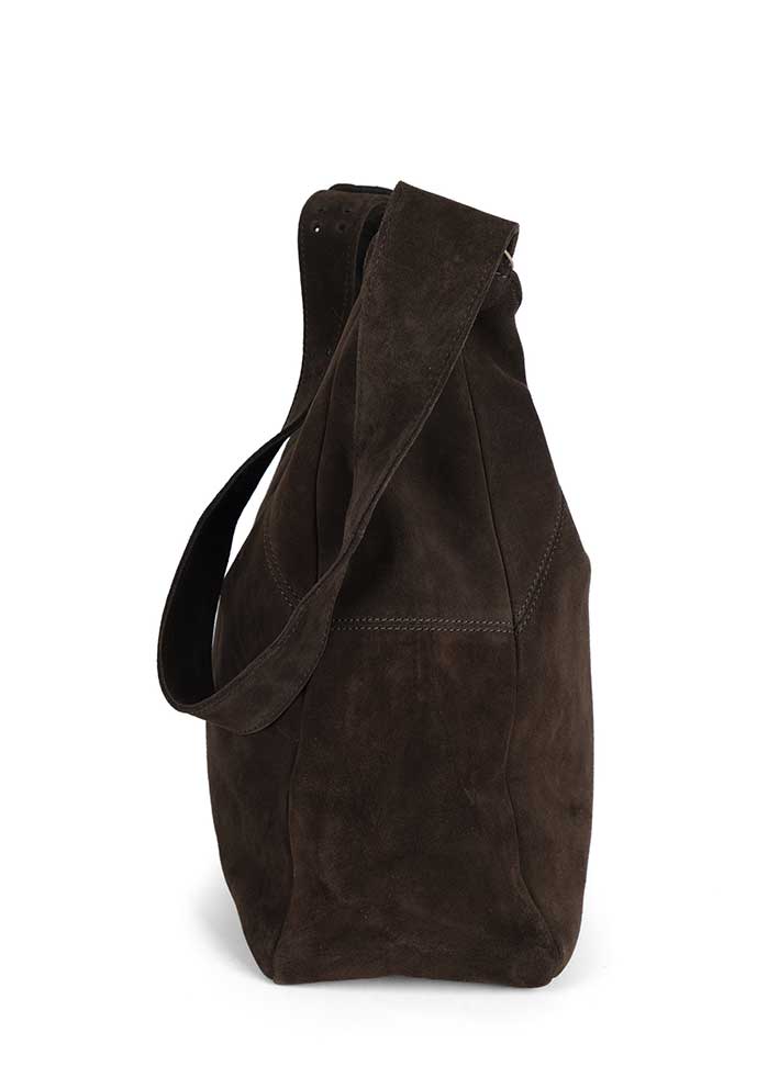Umådelig lækker mørkebrun Vista Medium Hobo ruskindstaske fra Luna Moon. Tasken er designet i et klassisk hobo-snit med en kraftig justérbar hank og lukkes med trykknap. Desuden foret og udstyret indvendigt med 3 lommer, hvoraf den ene lukkes med lynlås.