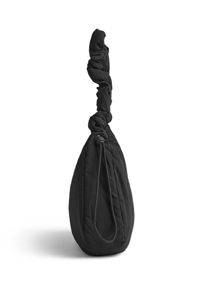 Elegant sort Ground crossbody taske fra Markberg. Tasken kan bruges både som crossbody og over skulderen. Den blødt polstrede rem med rynkeeffekt og justerbar snøre giver tasken et unikt og trendy look.