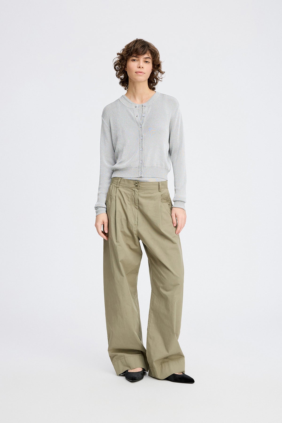 Super anvendelige bukser, der kan kombineres med det meste - her eks. med Pantas strik og Pote t-shirten samt sølvtop og -cardigan.