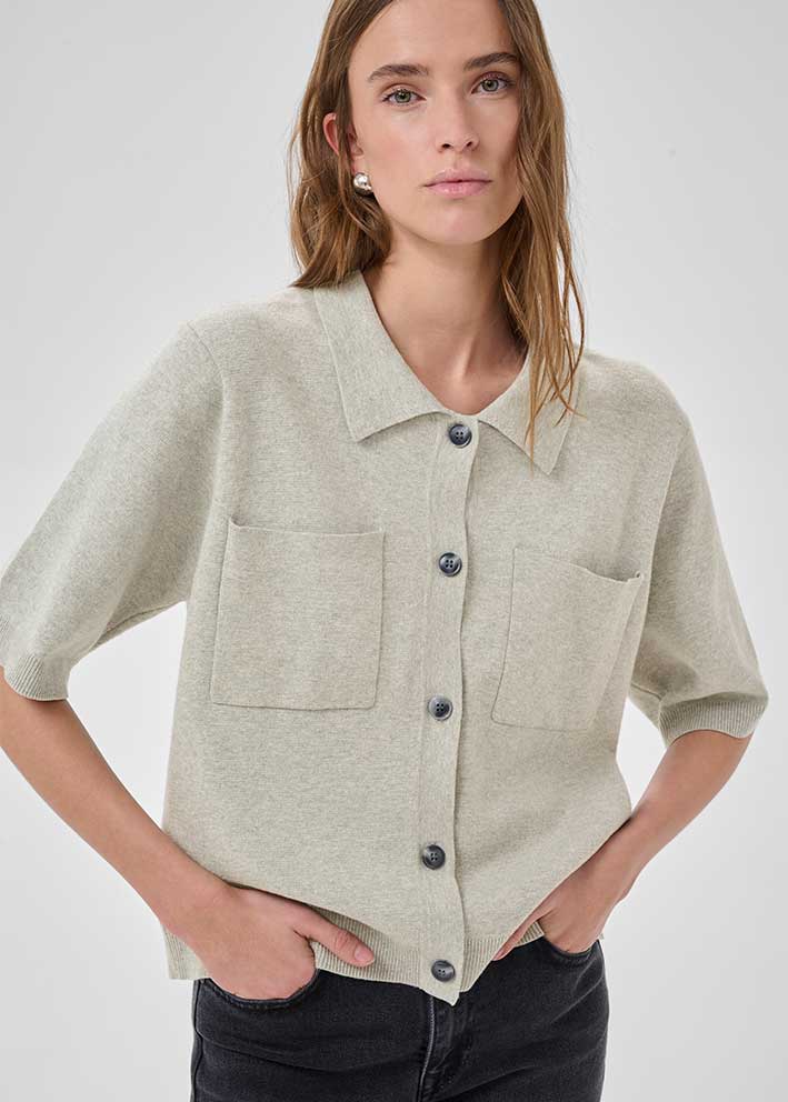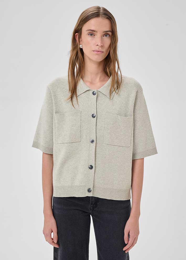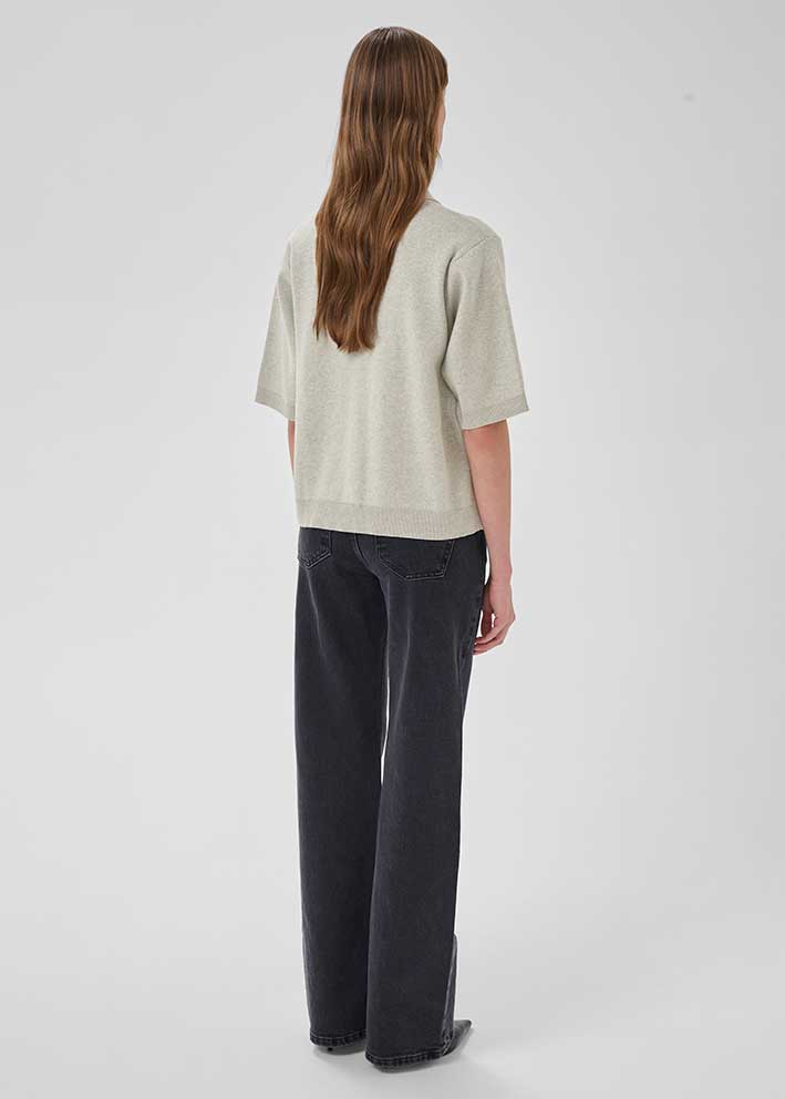 Strikket i en blød bomuldsblanding falder den smukt over kroppen og giver den perfekte balance mellem struktur og komfort. Den neutrale gråtone gør den til en alsidig basisvare, der fungerer over alt fra en hvid t-shirt til en silkebluse.