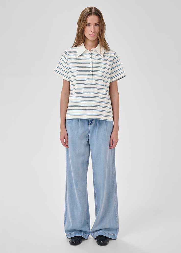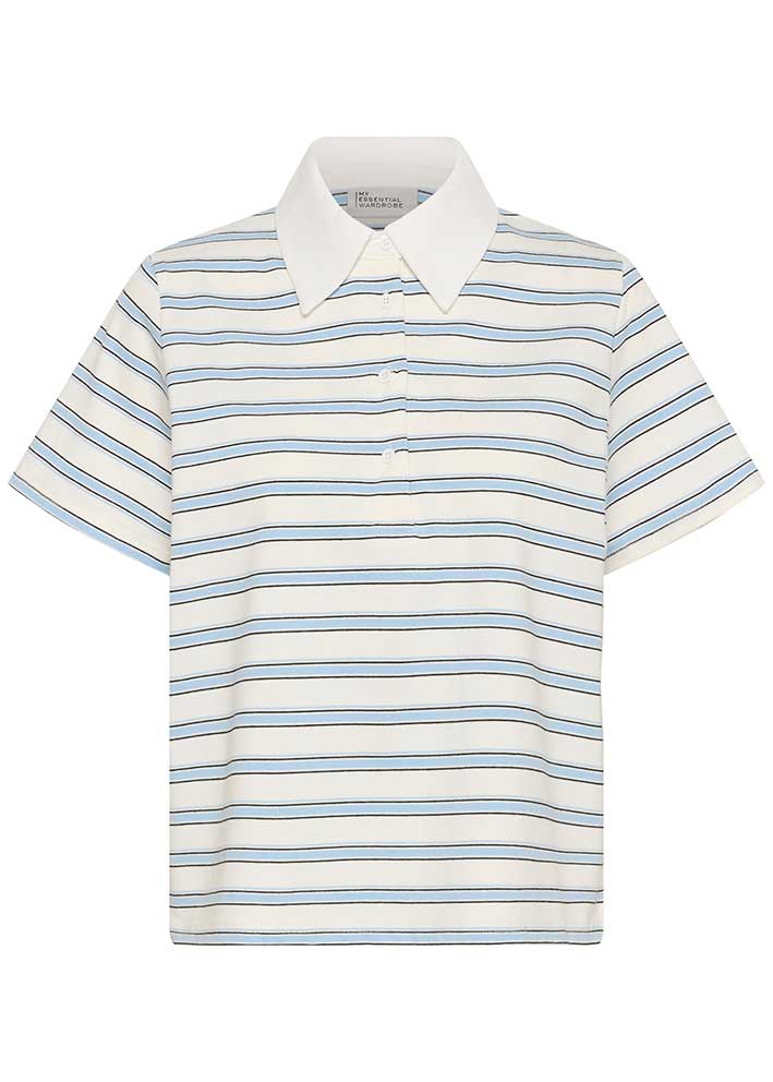 My Essential Wardrobe Asla Polo T-shirt – Snow White Striped
