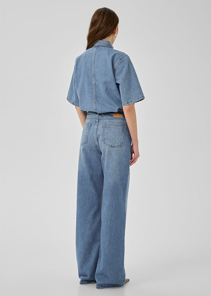 My Essential Wardrobe Abina Boxy Blouse - Medium Blue Wash