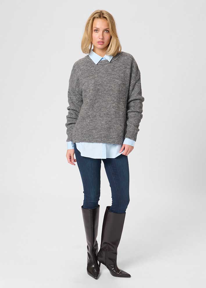 My Essential Wardrobe The Knit Pullover - Dark Grey Melange